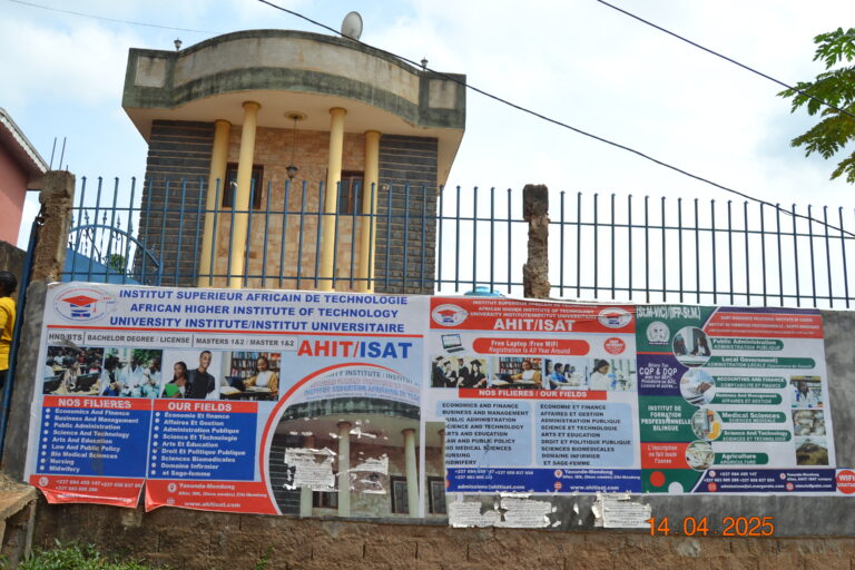 The African Higher Institute of Technology is located in Mendong, Yaounde. From Carrefour Banane, continue towards IBB; the campus is just before Deux Immeubles.